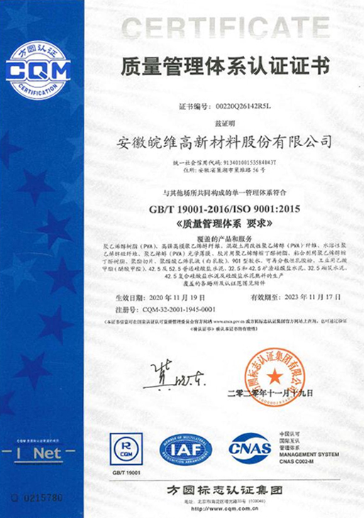 質(zhì)量管理體系認(rèn)證證書