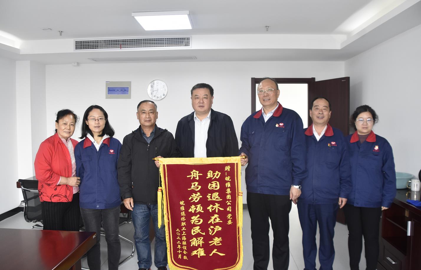 “感謝公司黨委,關心我們遠在上海的退休老職工,幫助我們解決了實際困難?!比涨埃瑑擅虾M诵堇下毠淼搅思瘓F公司黨委書記、董事長吳福勝的辦公室中,獻上一面寫有“助困退休在滬老人,舟馬勞頓為民解難”的錦旗,向公司黨委及相關部門負責人表達了真摯的感謝。