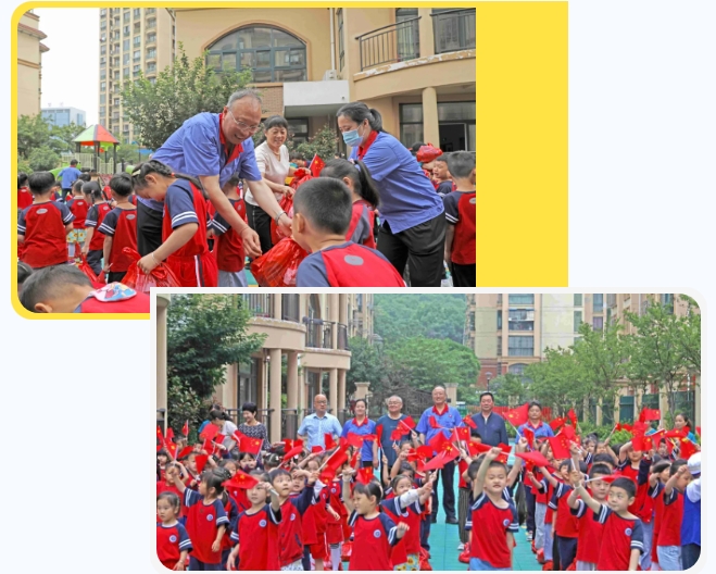 育人為本,德育為先?,F(xiàn)場(chǎng)舉行了愛國主義教育,邵明文講解有關(guān)國旗的相關(guān)知識(shí),教育小朋友們愛護(hù)國旗、珍惜國旗,要為祖國爭(zhēng)光!