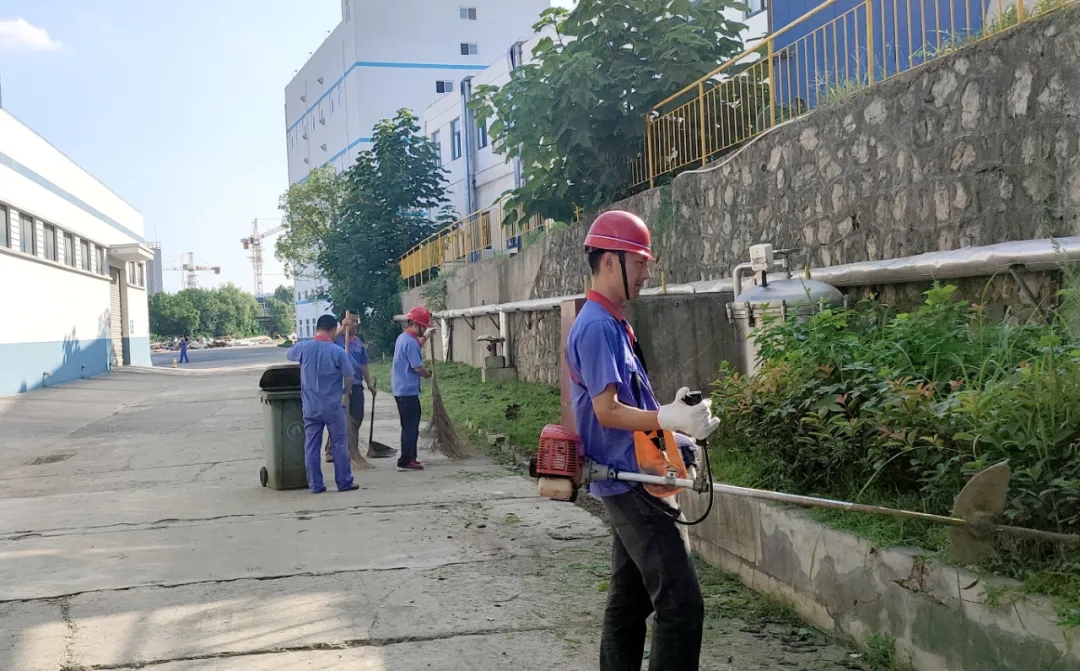 受近期臺風(fēng)影響,降雨持續(xù)時間長,雜草生長茂盛,但團(tuán)員青年們不懼驕陽,干勁十足,分工明確,各司其責(zé),有的團(tuán)員利用打草機等工具打草,有的團(tuán)員負(fù)責(zé)清理裝袋,有的團(tuán)員揮舞鐮刀砍除雜草。經(jīng)過兩個多小時的持續(xù)作業(yè),分廠綠化帶的雜草被清理的干干凈凈。